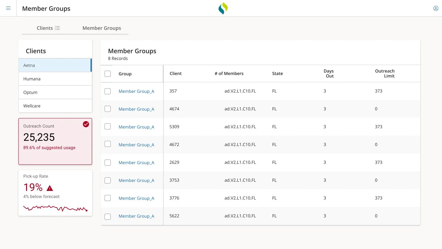 I also wanted to provide visualized outreach rates to the user to monitor phone number pools and its impact on the members. Since the users are internal and the tool specific, I was able to gauge sentiment quickly around designs as I was wireframing.